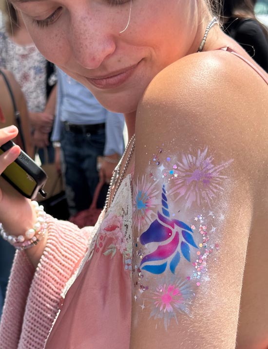 Sip coffee from@maries.coffee ☕️, enjoy a DJ, airbrush tattoos, hair tinsel, and grab a free photobooth moment from @fotovisionla